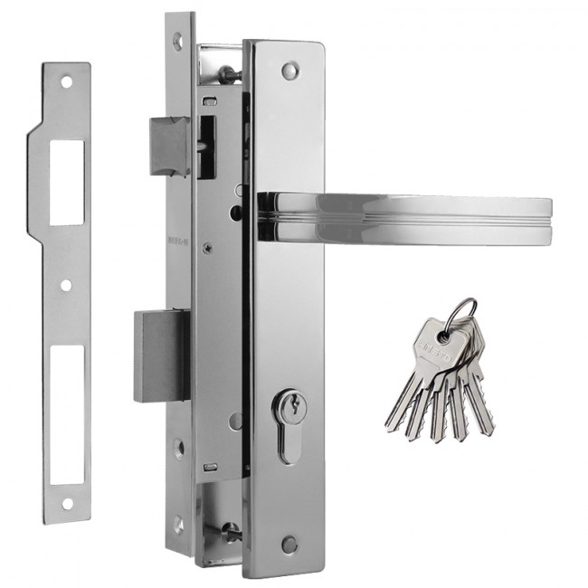 Тип изделияЗамок врезной с ручками на планке (комплект)